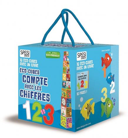 Des cubes illustrés d'images, de chiffres, de belles couleurs, et son livre de 10 pages.